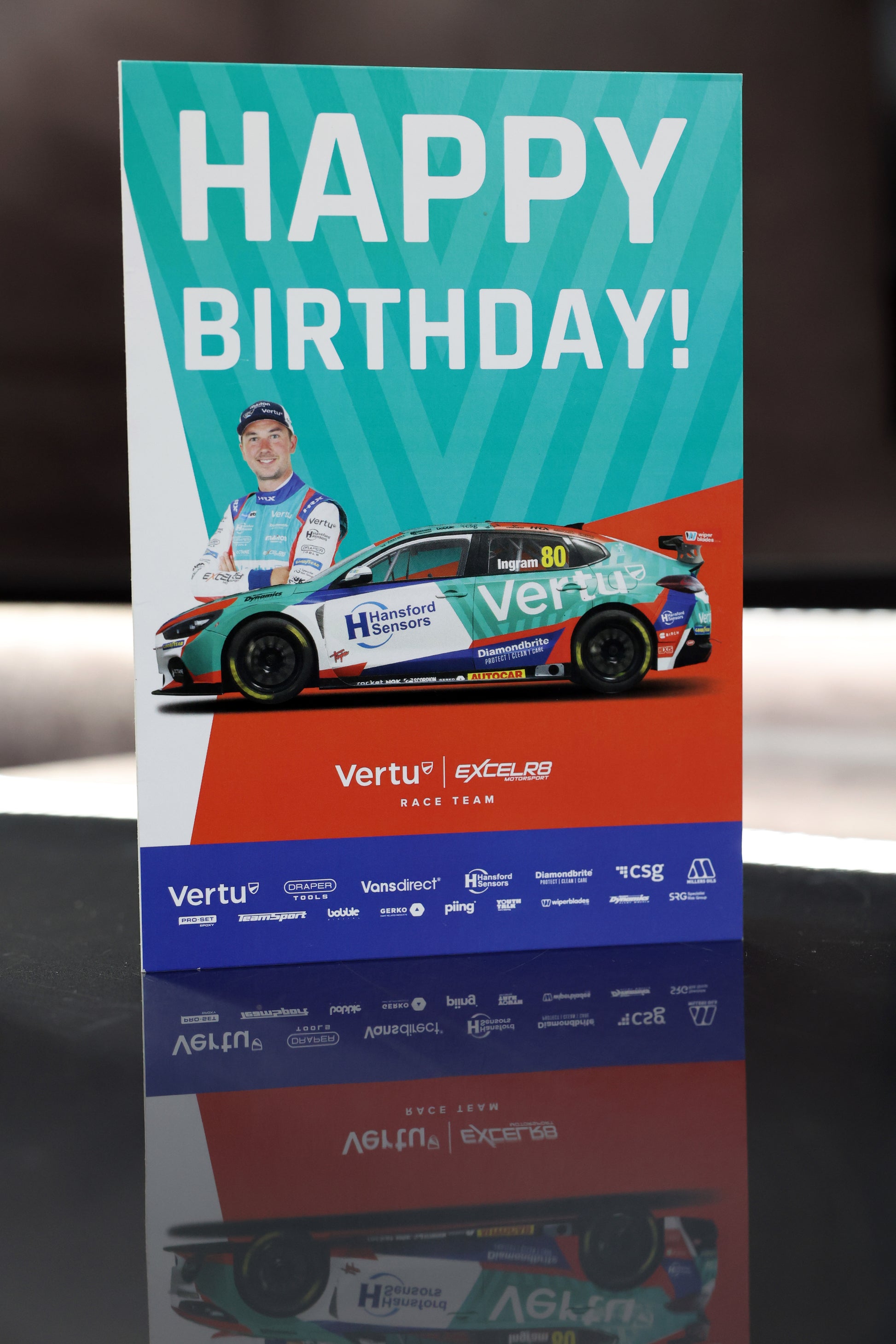 Celebrate in high gear with the EXCELR8 Birthday Card, featuring 2025 British Touring Car Champion Tom Ingram!