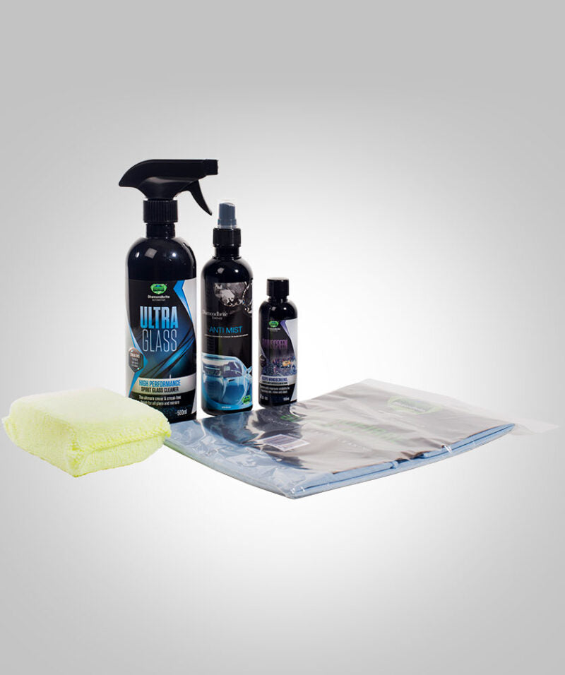 The Glass Wonder kit is specifically designed for cleaning the windows on your vehicle. This kit contains a Spirit Glass Cleaner 500ml, Anti Mist 250ml, Rainscreen 100ml, a Demister pad and glass cloth.
