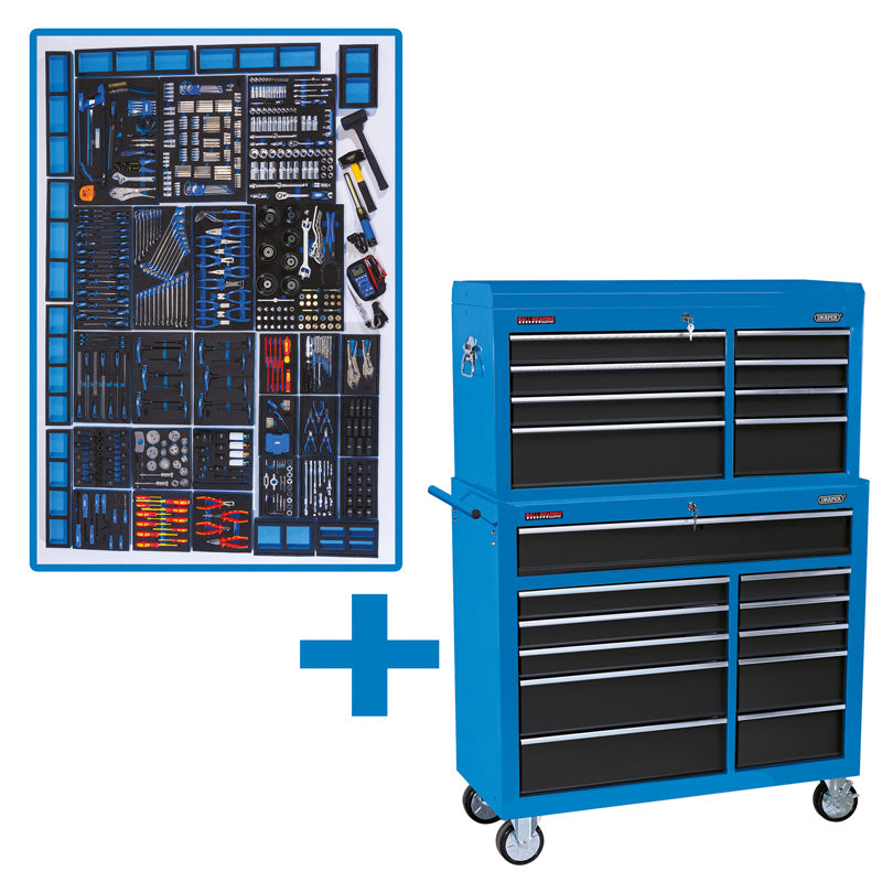 A super tough, powder coated 8 drawer tool chest and 11 drawer roller cabinet. Packed with 700 tool pieces, stored in high quality EVA foam trays. Included with the MegaKit is a slimline COB LED inspection lamp.