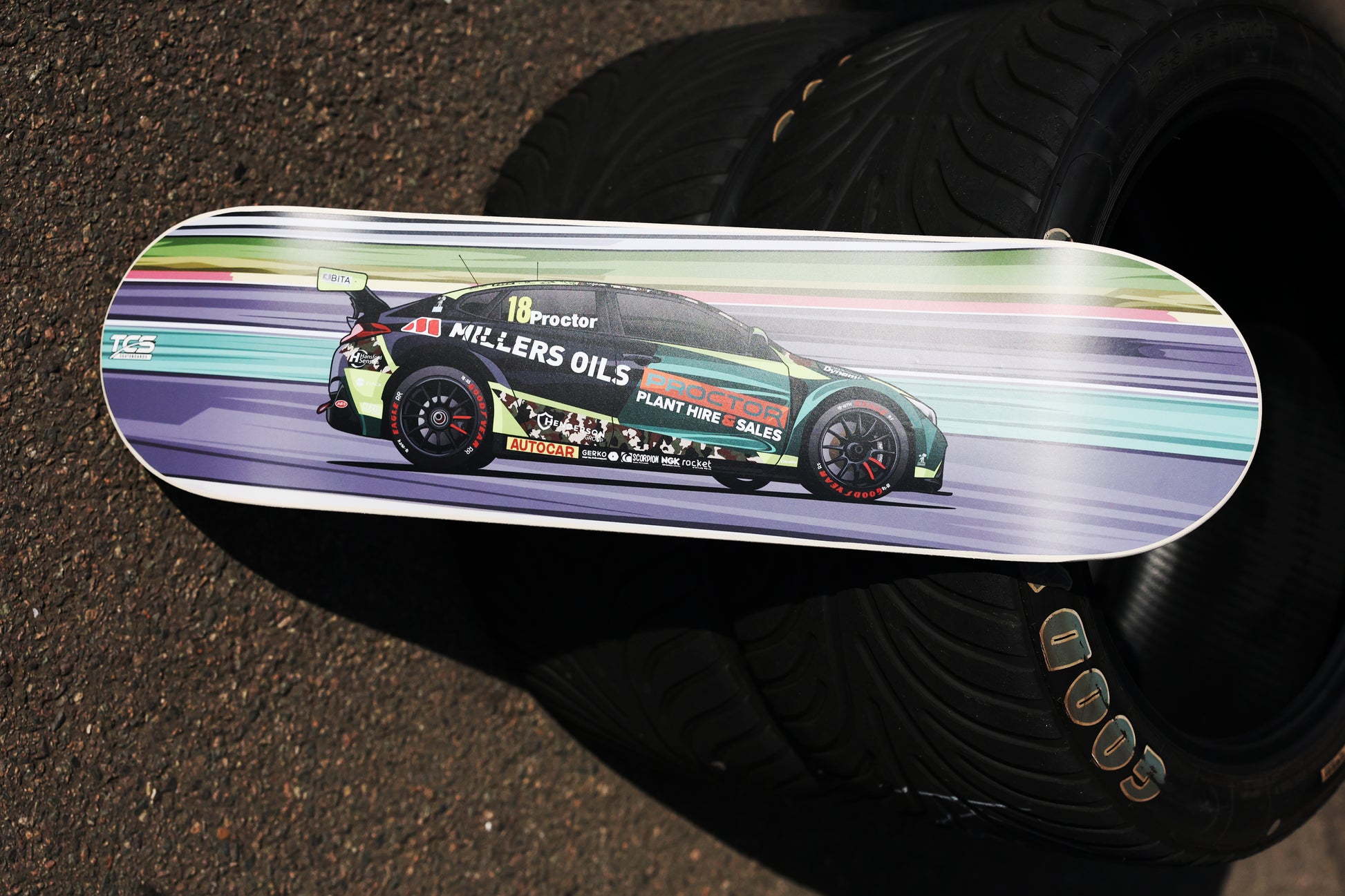 Custom designed and exclusive to EXCELR8 Motorsport, Senna Proctor wall art skate deck.